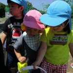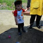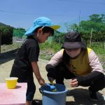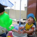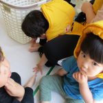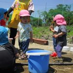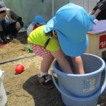 ずっとバケツの周りに座って水を触っているお友達も