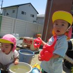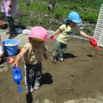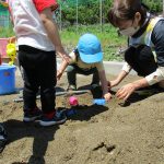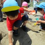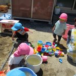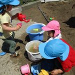 子ども達は砂場で水も使って遊びました(*^▽^*)