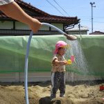 地面も暑くなっているので水をまくと、少し涼しく