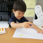 クレヨンが気になりながらも、しっかりお絵描きも
