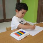 入れたりしたり、クレヨンを手にとって眺め、色の名前を