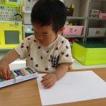 2歳児さんは自分で描きたい物を見つけて描いていました🖍