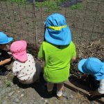 2歳児さんは虫探しがはじまり、木をどかせてダンゴ虫を