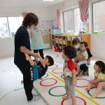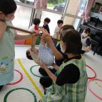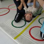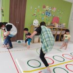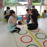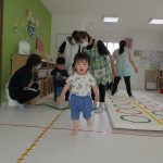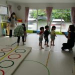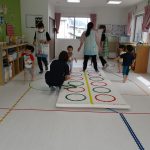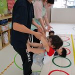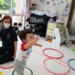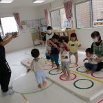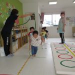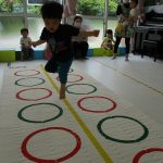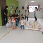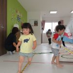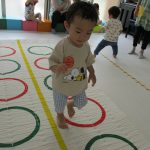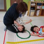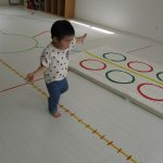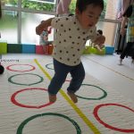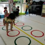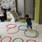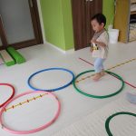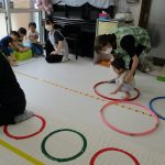 並んだフラフープの輪っかを進む動きも楽しかったです(^_^)