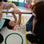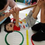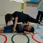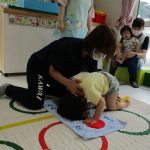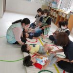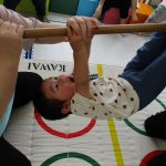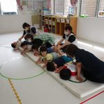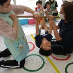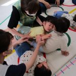 みんなでマットの上に寝転んで、その上を一人ずつ