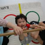 木の棒につかまって回る練習です!!