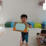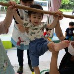 1歳児さんの男の子、前回やったおサルさんポーズを