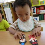 1歳児さんは七夕飾りの短冊に付ける織姫と彦星の