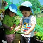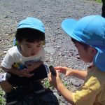 1歳児さんの製作が終わって、みんなで園庭に出て