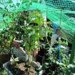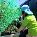 まだ青いミニトマトを眺めながら、「早く赤くなるといいね」