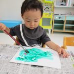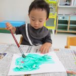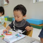 1歳児さんは製作、2歳児さんはお絵描き・シール貼りを