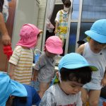 2歳児さんは先生のお話しを聞いて、口に手を当てて
