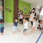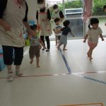 みんなでつながって汽車ポッポになり、線路を歩きます!!