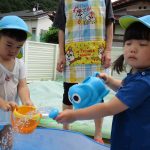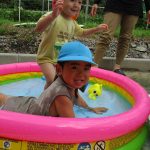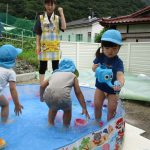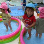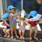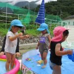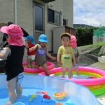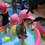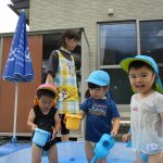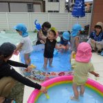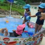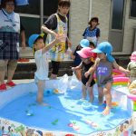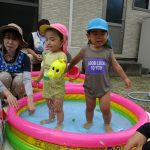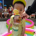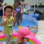 プールの中に水爆弾を落とすと、水しぶきが上がり