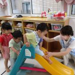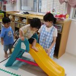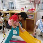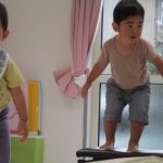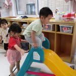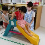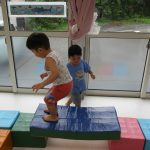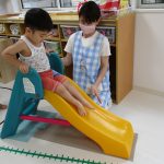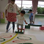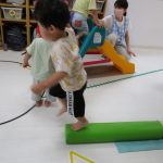 平均台の一本橋を渡って、すべり台をすべりました!!