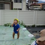 0歳児さんのお友達はプールの周りを散策(?)して