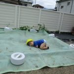 砂場のシートの上に「ねんね・・・」と言いながら