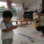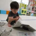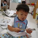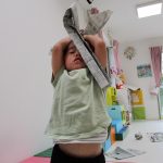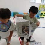 新聞紙をもらうと早速遊び始めます(^_^)