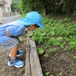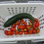 きゅうりとミニトマトが実っていて、2歳児さんが