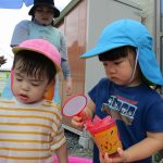バケツや砂場用玩具を使って遊びました(^o^)