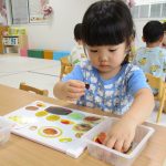 2歳児さんは説明を理解して、丸に合わせて上手に