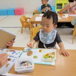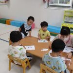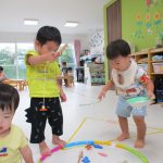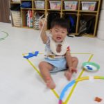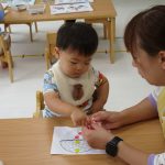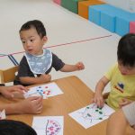 0・1歳児さんは丸に合わせて貼るのは難しいようで