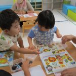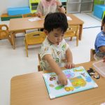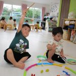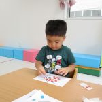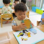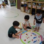 2歳児さんは説明を理解して、丸に合わせて上手に