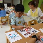 シール貼りでは丸の形に合わせてシールを貼りました!!