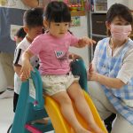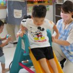 すべり台は順番にすべるようにその都度都度で