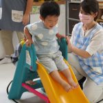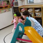 すべり台ではボールを転がすことの楽しさも