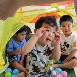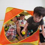 途中からボールハウスも出すと、狭い空間に大勢で