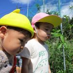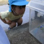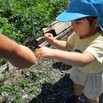 「トンボ、これ食べるっけね」と言ってツユクサを