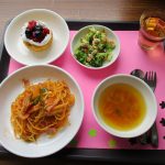 今日の給食はナポリタン・ブロッコリーサラダ・