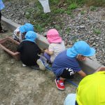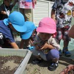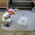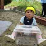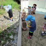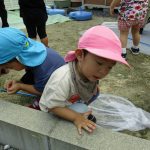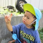 保育園に戻り、砂場付近でまた虫探しを