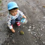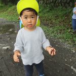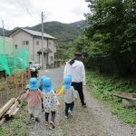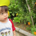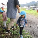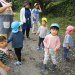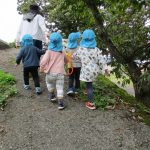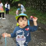 2歳児さんは誘導ロープにつかまって、1歳児さんは