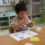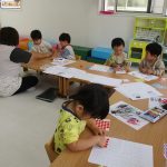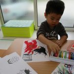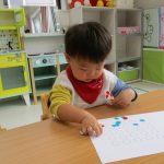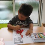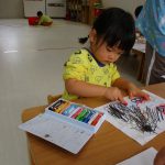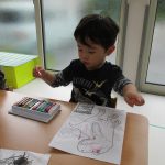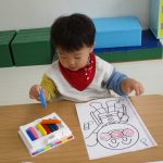 今日は室内でお絵描きやぬりえ、シール貼り、