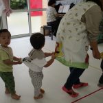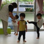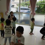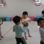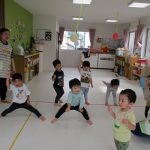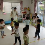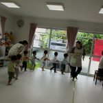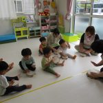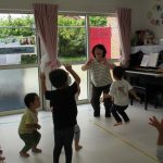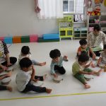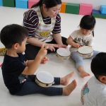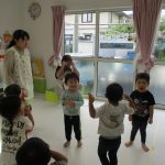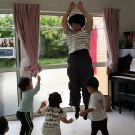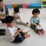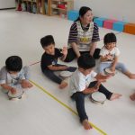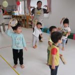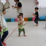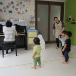 こずえ先生の弾くピアノに合わせてリズム遊びを