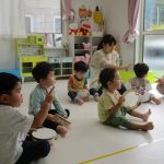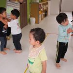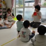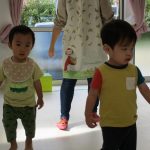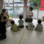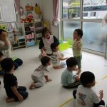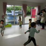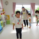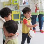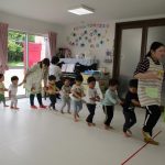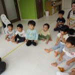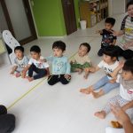 リトミック教室の後に、竜巻を想定した避難訓練を