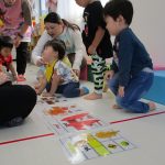 なっちゃん先生が色々な色の葉っぱを準備する間、