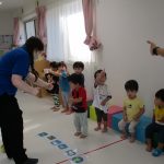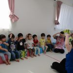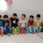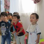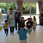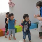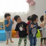 てをたたこう」のメロディーなので、子ども達にも