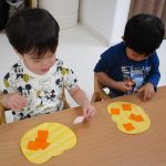 1、2歳児さんたちは、ハロウィン製作の続きをしました♫
