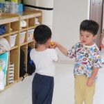 湿度が高く、汗をかいていたお友だちは半袖で過ごしています。