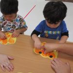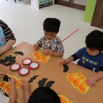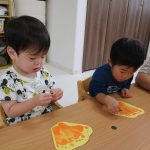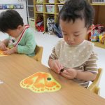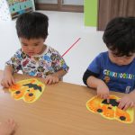 1、2歳児さんたちは、ハロウィン製作の続きをしました♫
