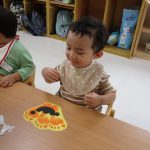 次に1歳児さんは毎月の製作もしました♫