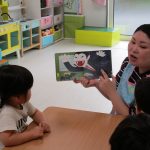 1歳児さんがまだ製作していたので、ハロウィンの絵本を見ていた2歳児さん(^O^)