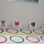 その先のマットの上に置いてある4枚の動物カードの