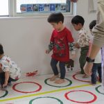 月齢の大きいお友達は体育教室のはじめの方に