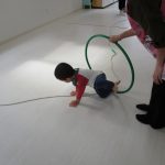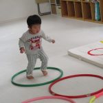 次には積木の上からジャンプして、フラフープの