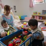 0歳児さんのお部屋では玩具遊びをして