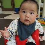 0歳児さんはバンボベビーソファーにお座りをして